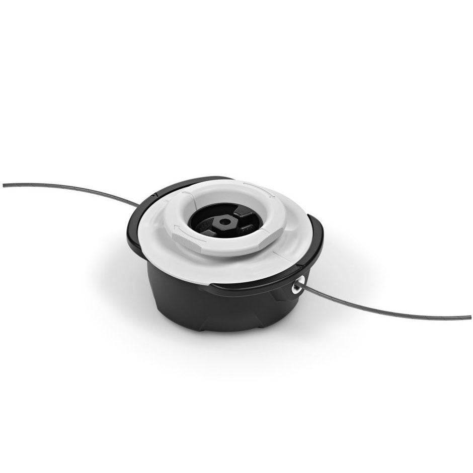 Clearing saw double line mowing head, for mowing and clearing work. Mowing line is adjusted manually instead of tapping the mowing head. The cutting line can be refilled from the outside without opening the housing. Housing with gripping contour for loosening and fastening the mowing head by hand. Compatible with 2.4 mm & 3.0 mm mowing line.